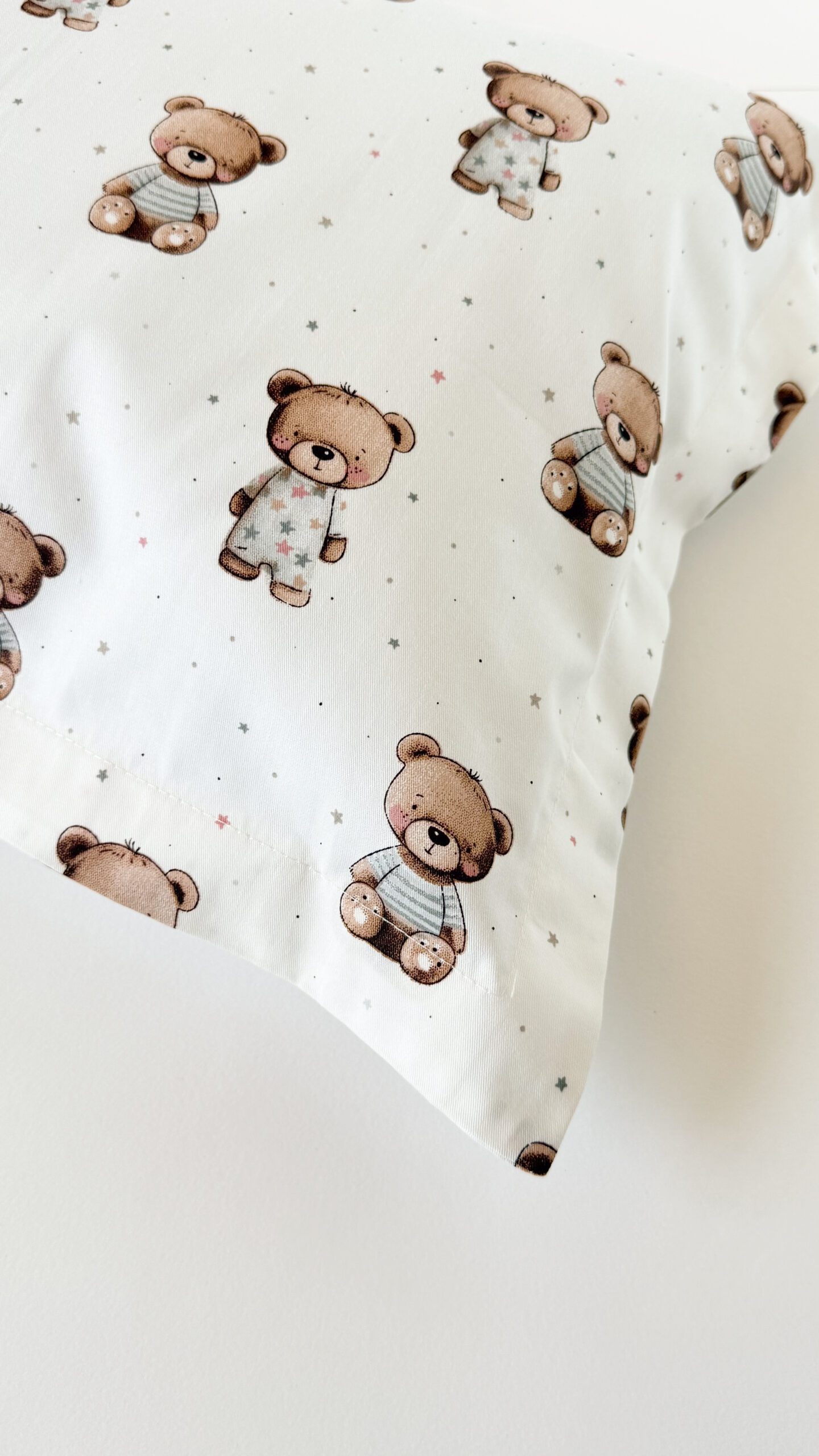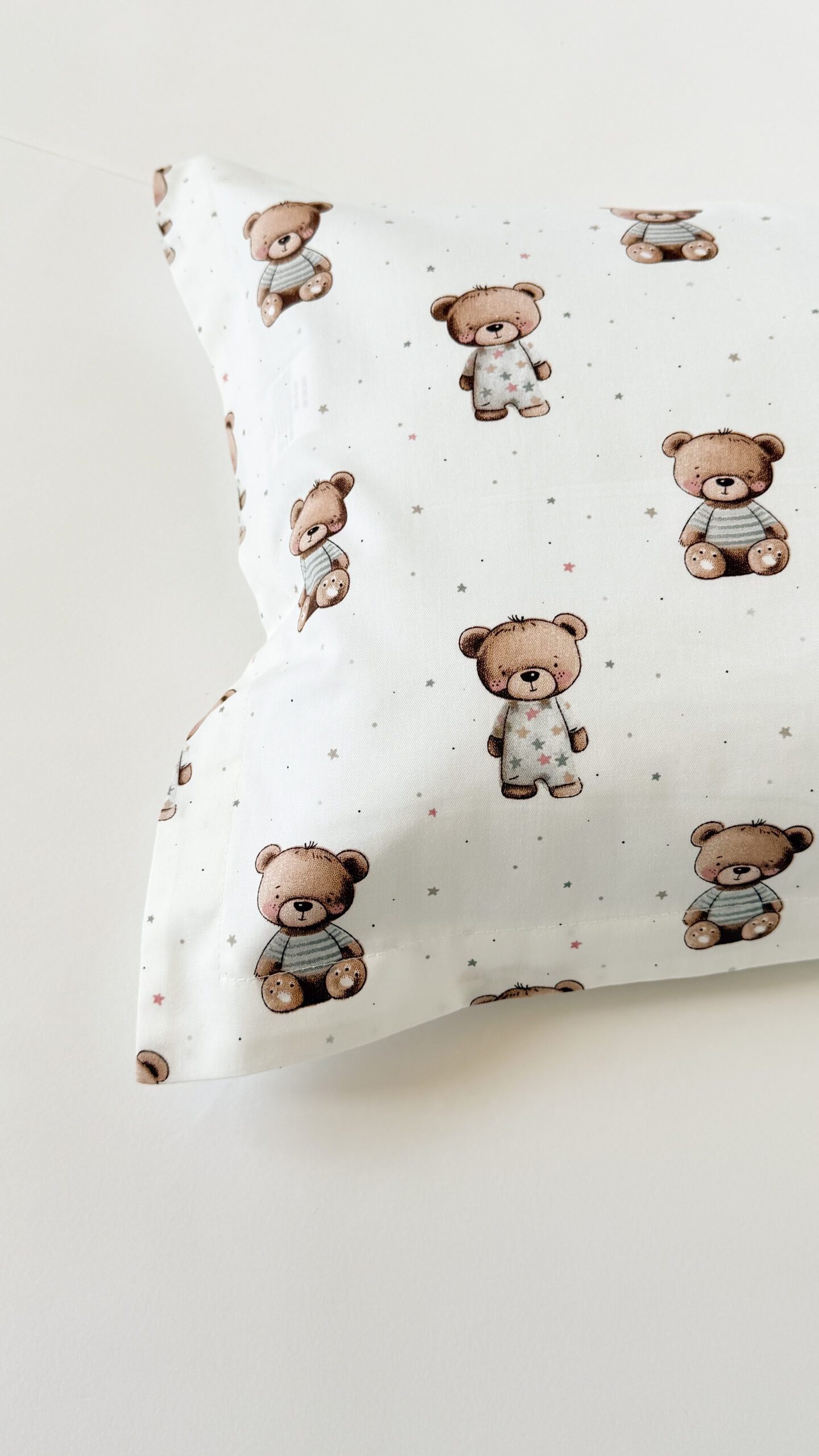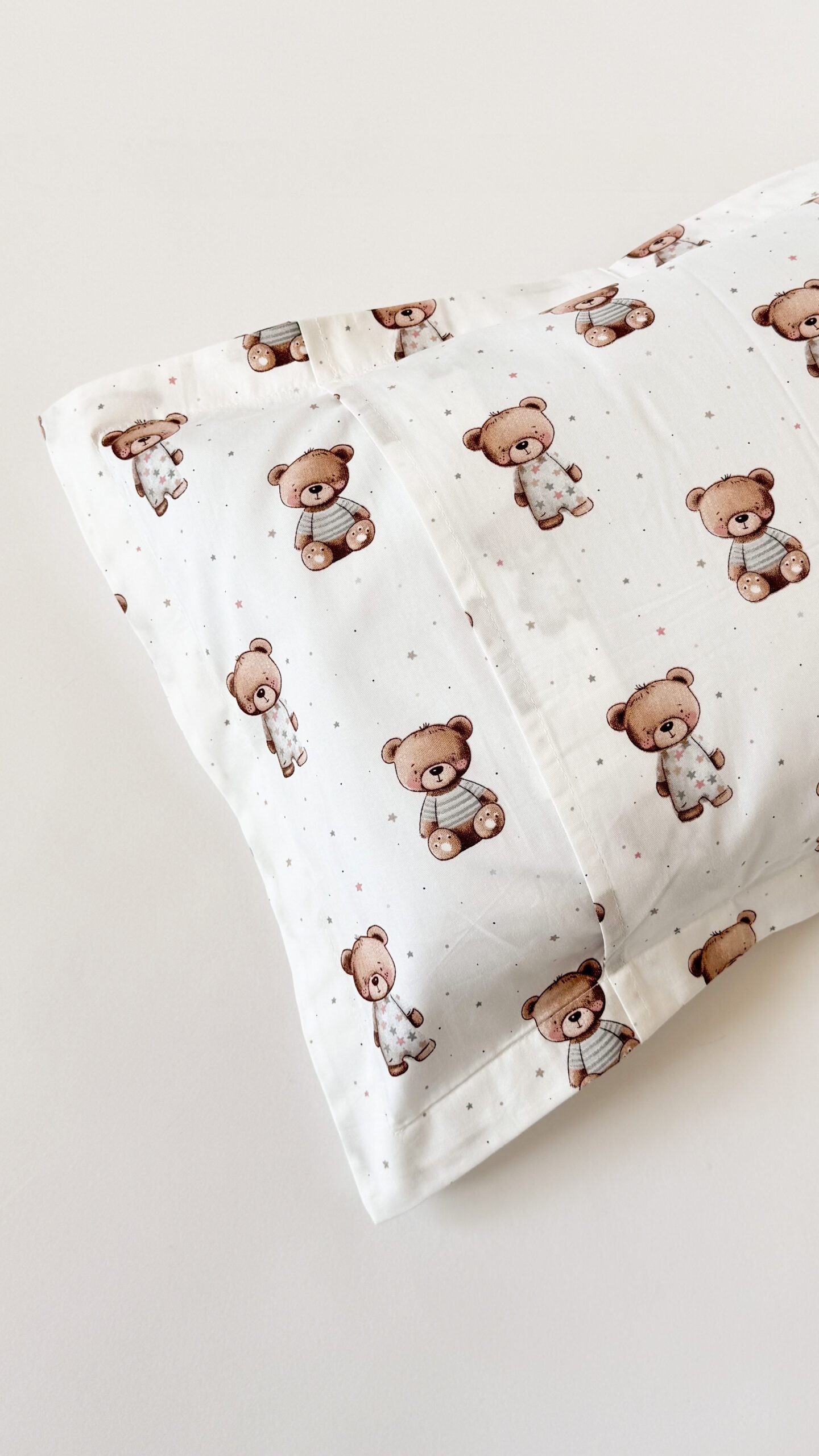 Husă de pernă 30*50 cm cu chenar, din bumbac, are un aspect cochet și copilăros..