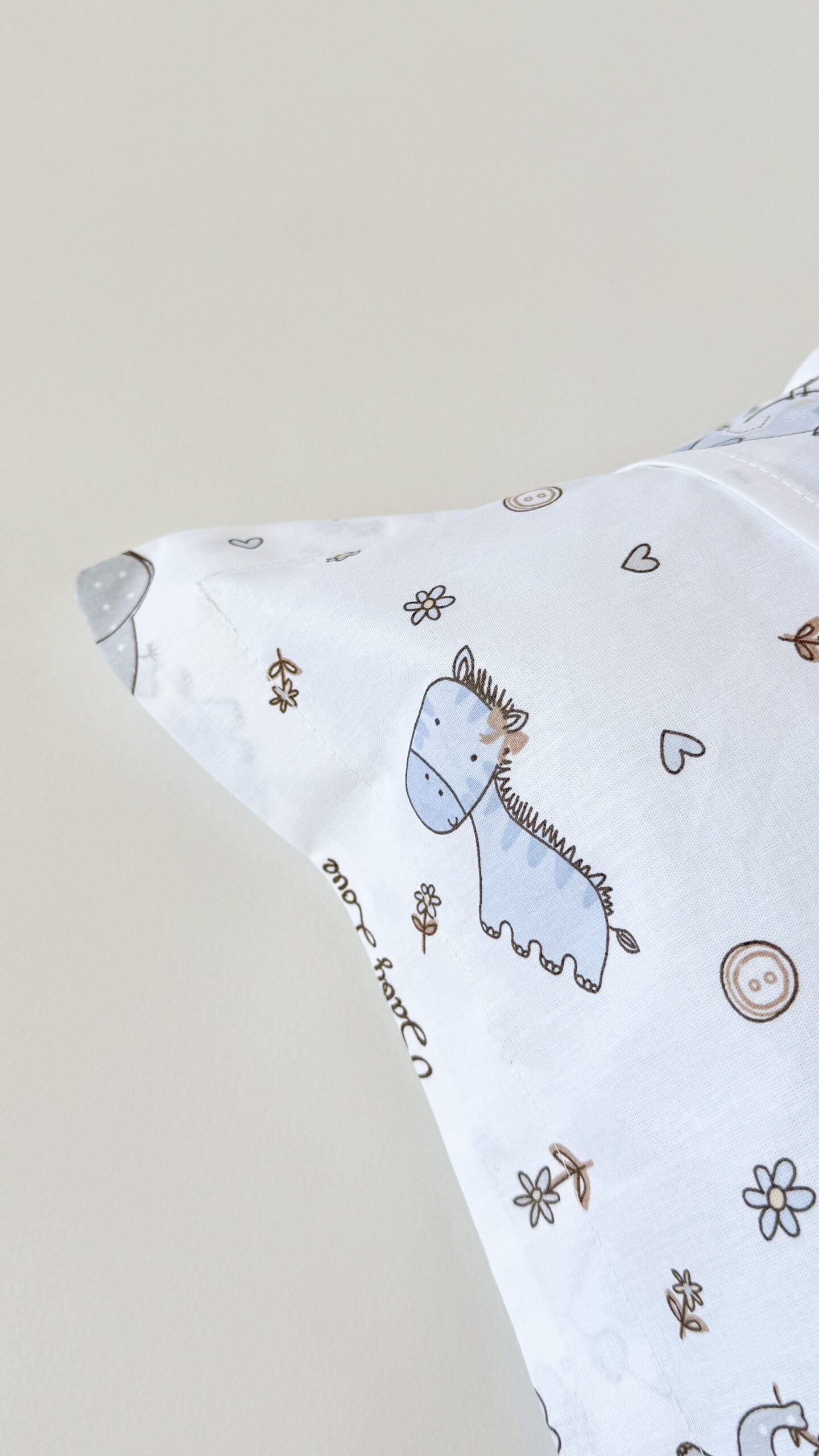 Husă de pernă 30*50 cm cu chenar, din bumbac, are un aspect cochet și copilăros..