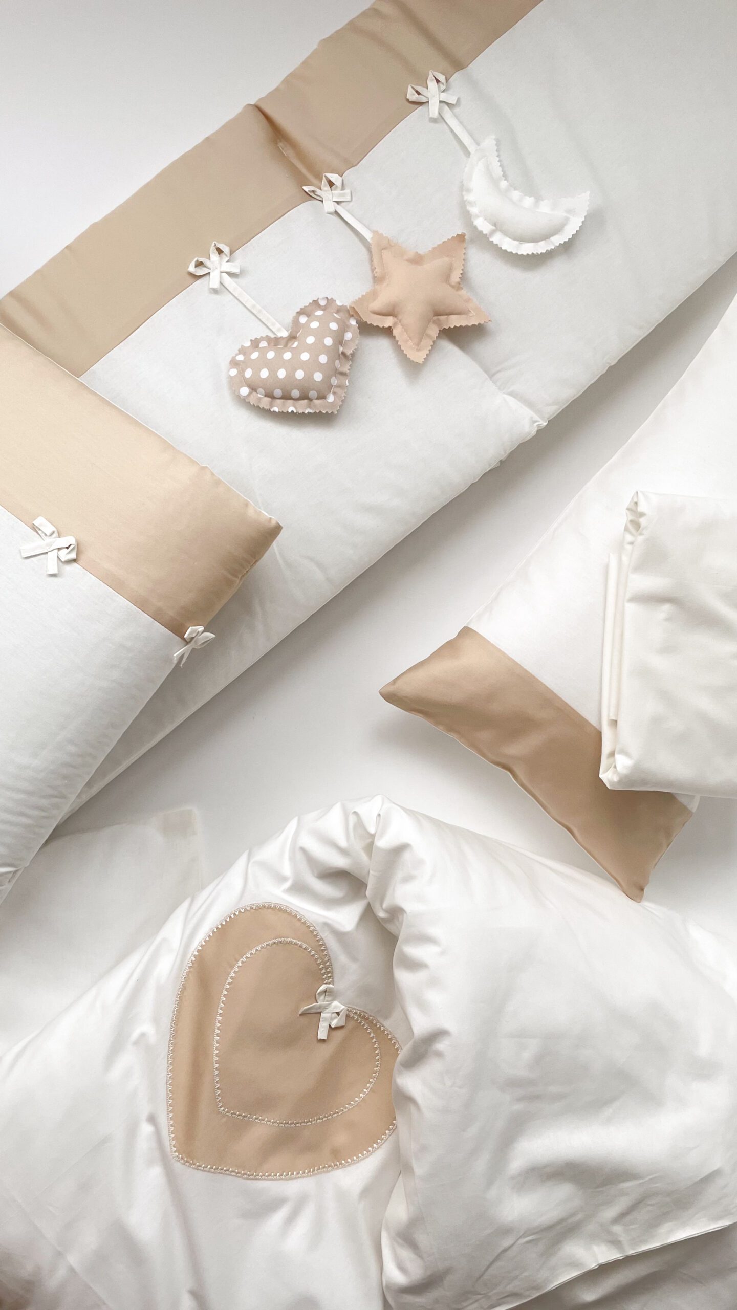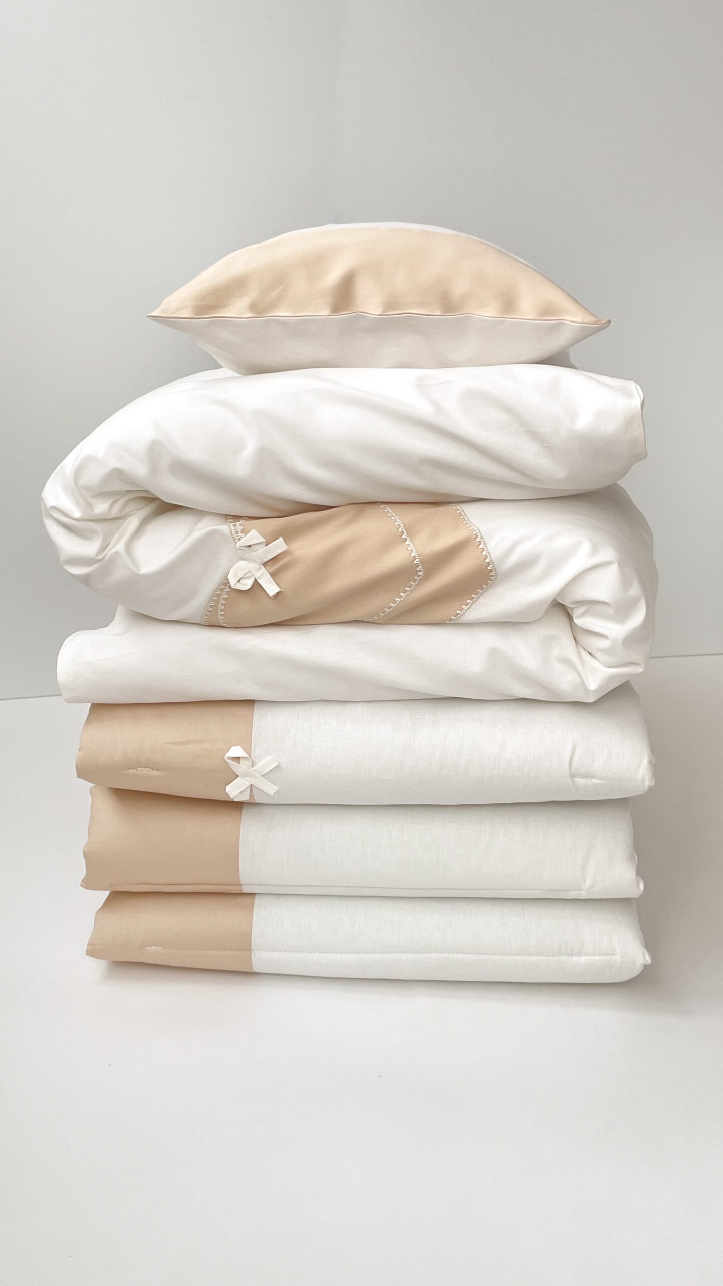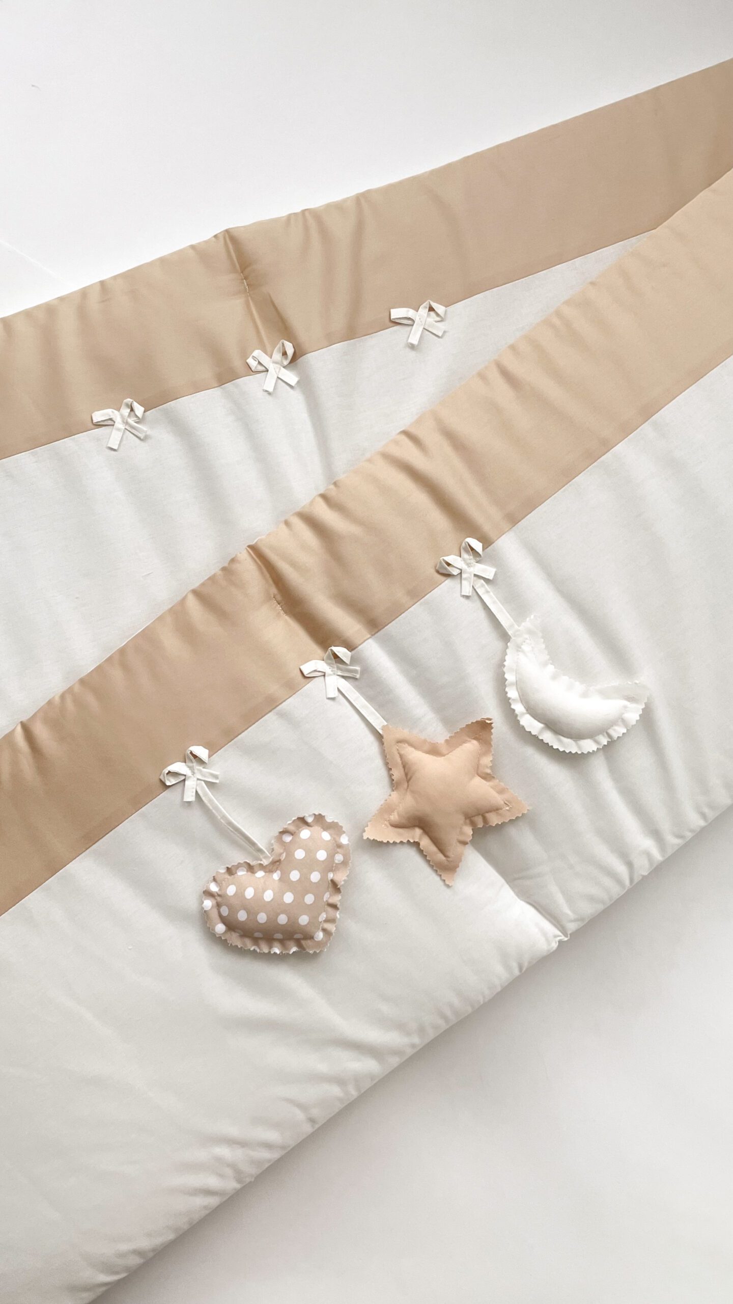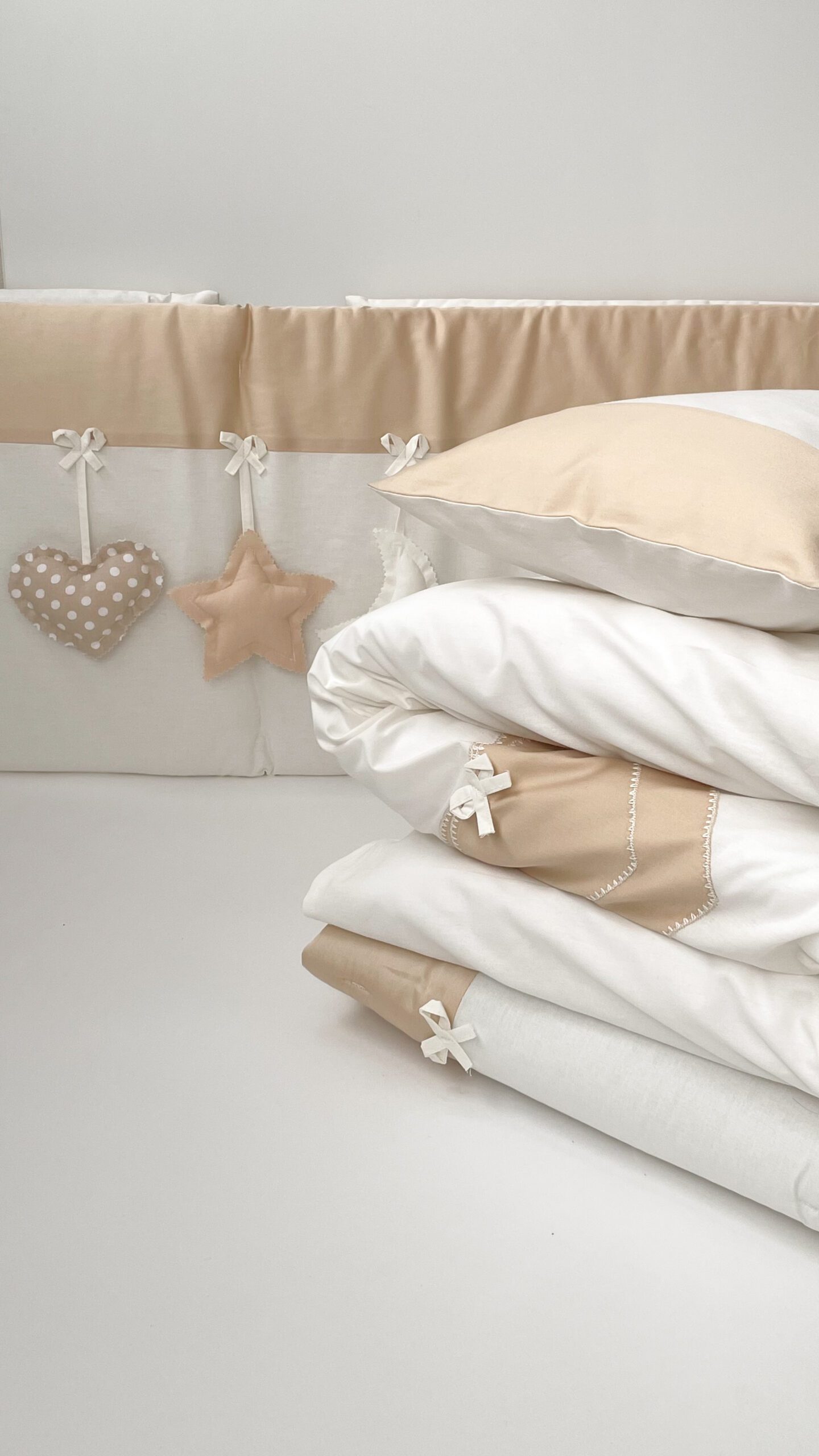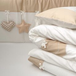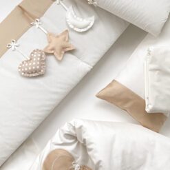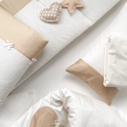 Setul din 6 unități are apărătorii din bumbac, ales cu atenție, pentru a se potrivi necesităților celor mici, are nuante fine și delicate. Aparătorii pot fi îmbrăcați în pătuț atît pe o parte, cît și pe cealaltă, în dependență de aspectul camerei. Bumbacul este cea mai potrivită stofă pentru bebeluși, e inofensivă, naturală și plăcută ca atingere.