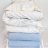 Setul din 6 unități poate fi folosit cu apărătorii din bumbac satinat cu imprimeu drăguț, ales cu atenție, pentru a se potrivi necesităților celor mici, are nuante fine și delicate. Partea verso este cusută din bumbac, nuanță ivory, moale și plăcută. Aparătorii pot fi îmbrăcați în pătuț atît pe o parte, cît și pe cealaltă, în dependență de aspectul camerei. Bumbacul este cea mai potrivită stofă pentru bebeluși, e inofensivă, naturală și plăcută ca atingere.